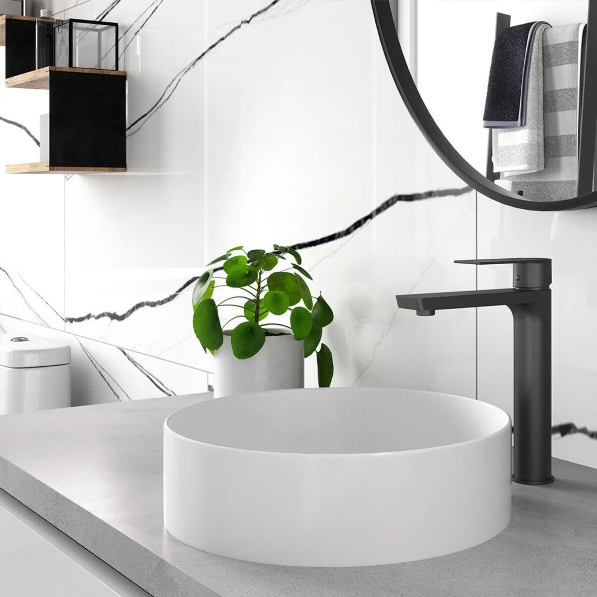 Grifería para lavamanos línea Squadra baja, con un diseño moderno y varios acabados para generar versatilidad en tus espacios.